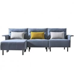 108.66 in. Navy Blue Linen Fabric 4-Seater Accent Sectional Sofa with Two Ottomans by Magic Home