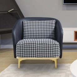 Polyester Leopard Gray Fabric Accent Arm Chair with Cushion and Polished Legs by Magic Home