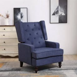 Navy Blue Polyester Linen Comfortable Rocking Chair Accent Chair with Arms by Magic Home
