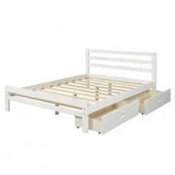 White Full Size Wood Platform Bed with 2 Drawers by Magic Home