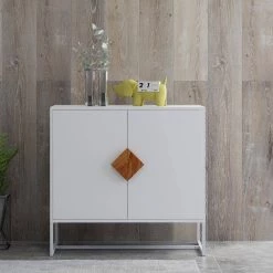 White Sideboard with 2-Doors and Square Shape Handle by Magic Home