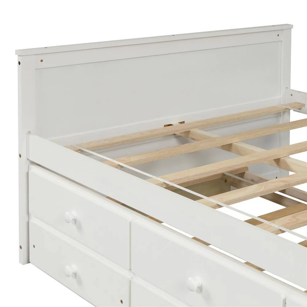 - Captain bed make the most of a small bedroom with a twin bed designed with under bed drawers for storage and a hideaway trundle bed for sleepovers with friends