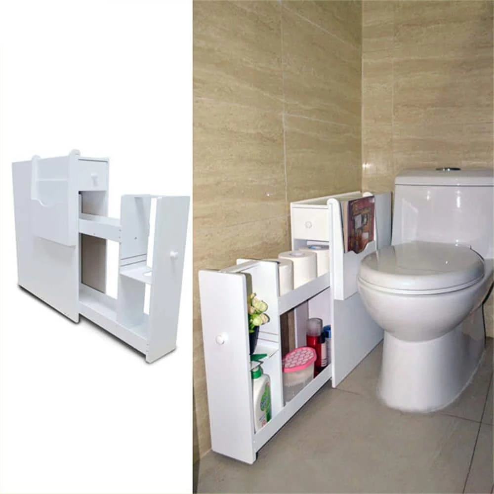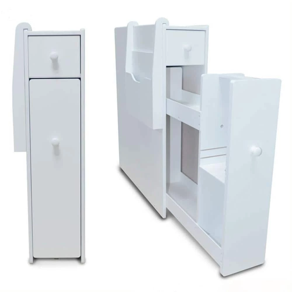 - Bathroom storage cabinet with a narrow footprint but large capacity, with a small drawer and a large drawer with 3-compartments, you can place your toilet paper, shampoos, baths, toiletries and etc